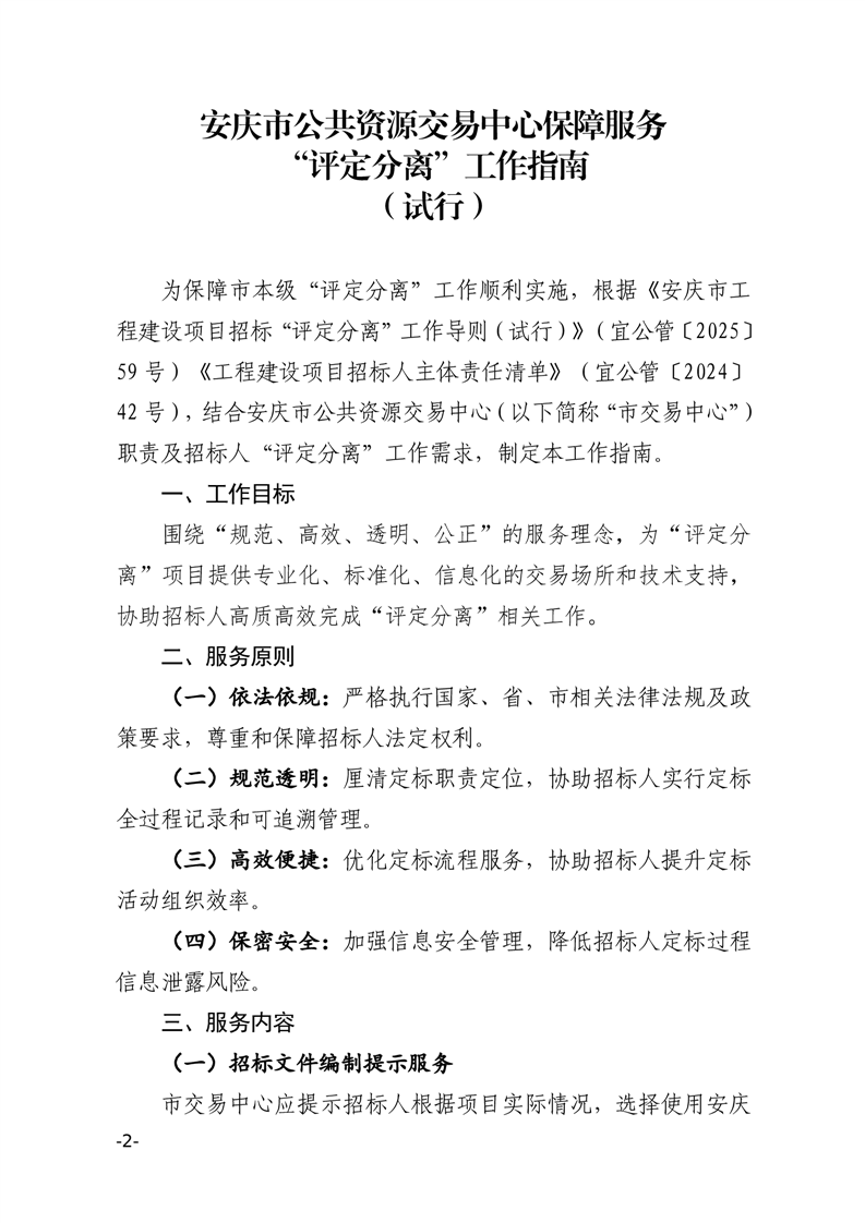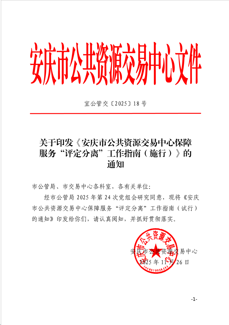 關(guān)于印發(fā)《安慶市公共資源交易中心保障服務(wù)“評定分離”工作指南(試行)》的通知